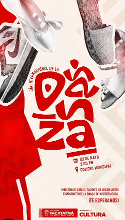 La Alcaldía de Facatativá y la Secretaría de Cultura invitan a la comunidad a celebrar el Día Internacional de la Danza. Ven y disfruta de una tarde llena de ritmo y talento con los mejores exponentes de nuestra ciudad en una muestra artística diseñada para toda la familia. ¡Te esperamos para vivir la magia del movimiento!